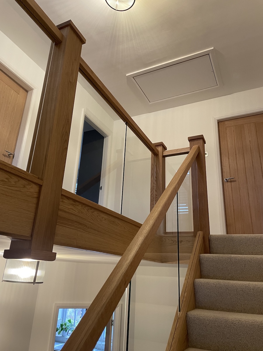Glass Balustrade Panels: Toughened glass panels were installed within the balustrade to create a brighter and more open feel in the hallway.