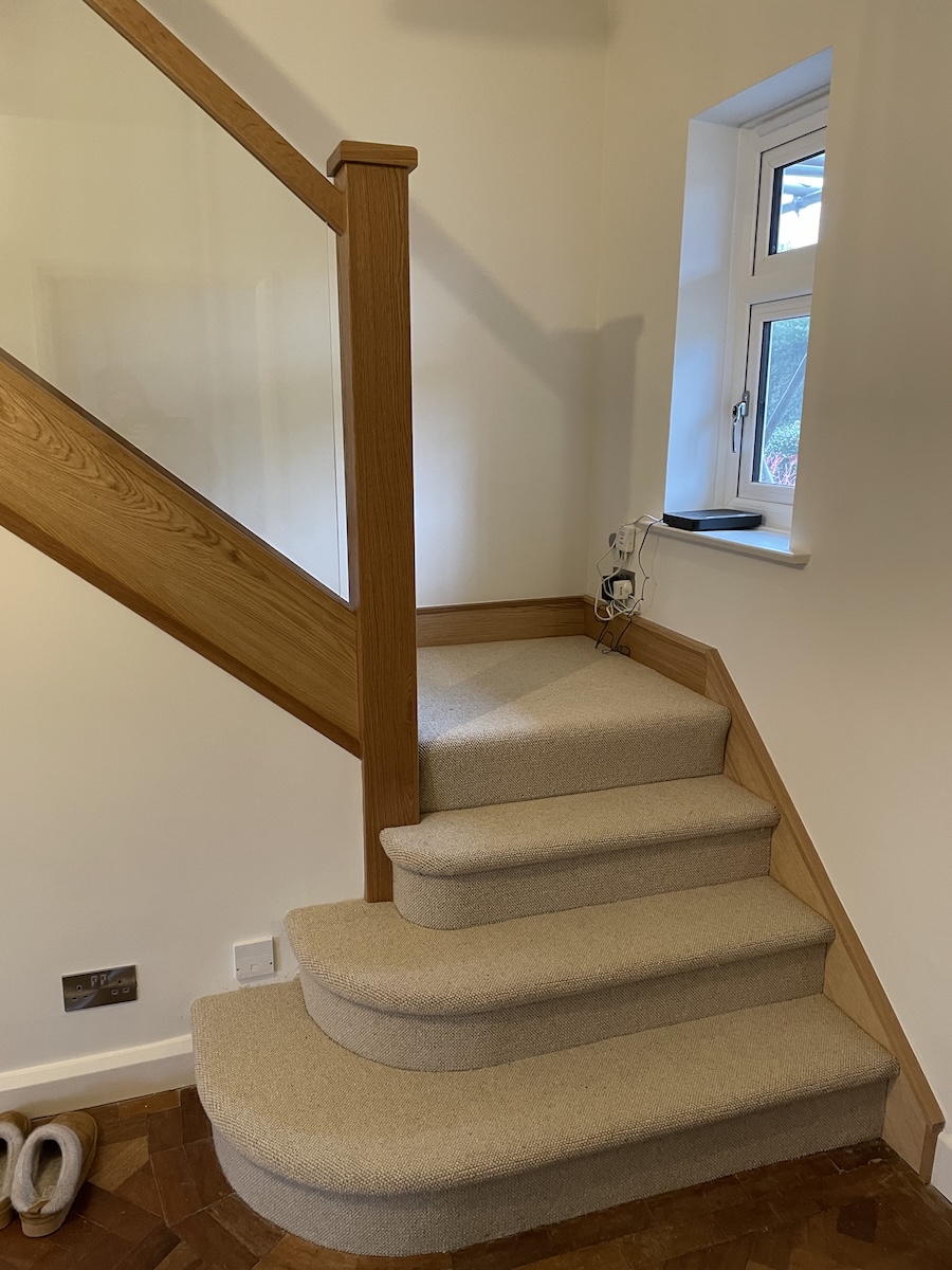 For this project in Broughton Astley, the client wanted to modernise their hallway and create a staircase that complemented their newly installed internal doors. The aim was to achieve a clean, contemporary look while maintaining the warmth and quality of natural timber.