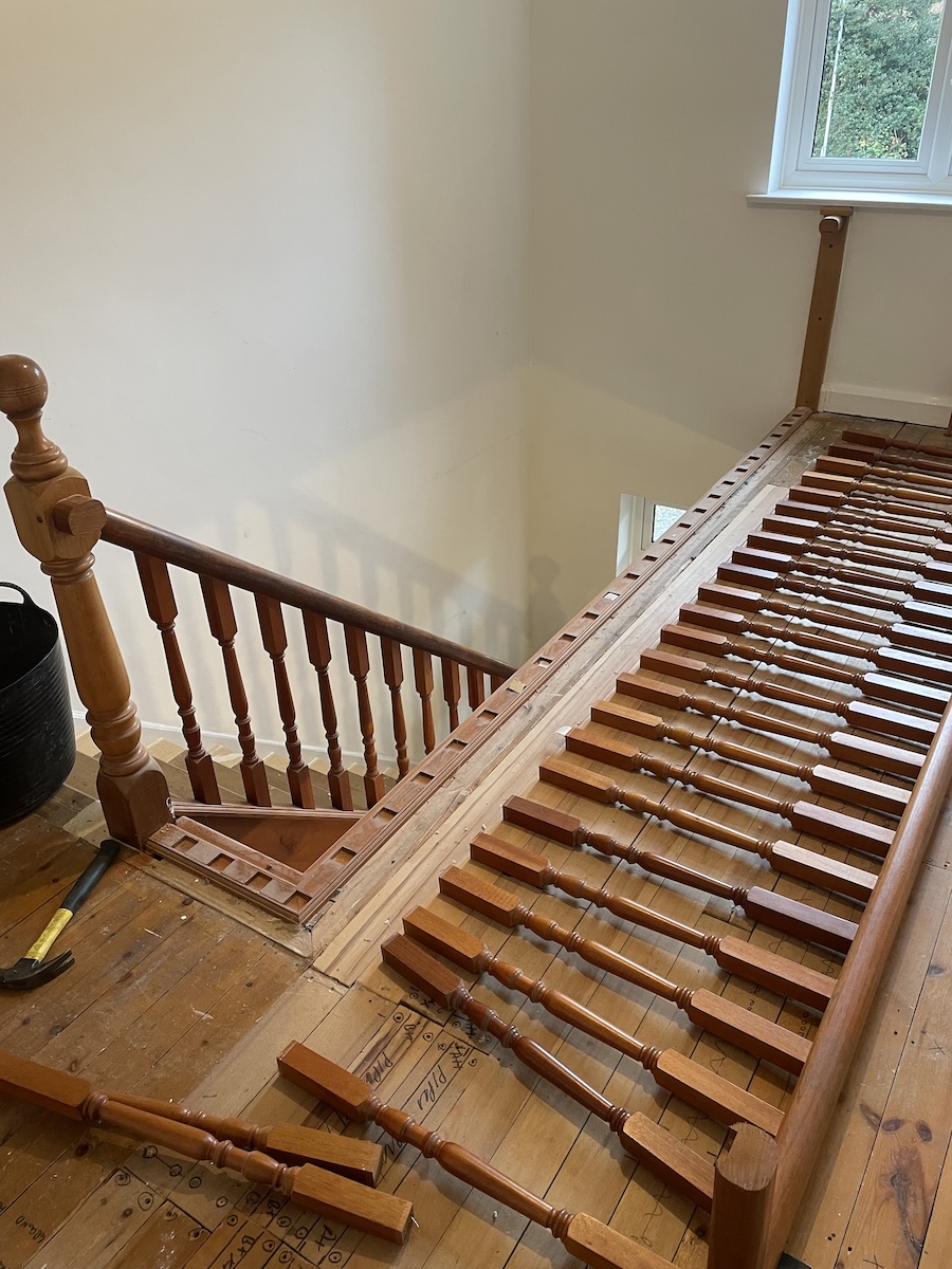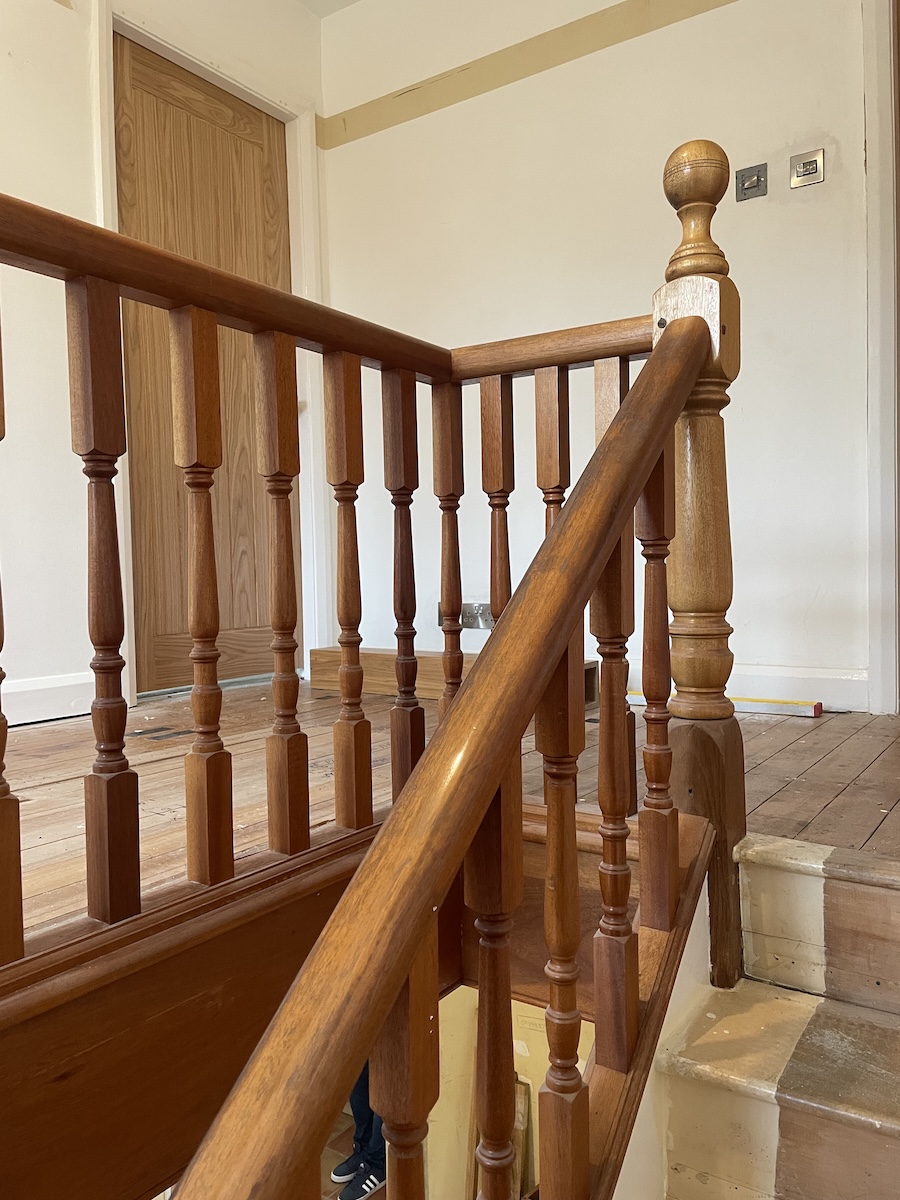 The existing staircase lacked the modern style the client wanted and did not match the updated interior features within the hallway, particularly the newly fitted internal doors.