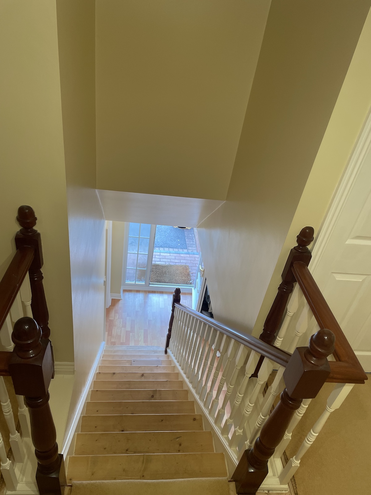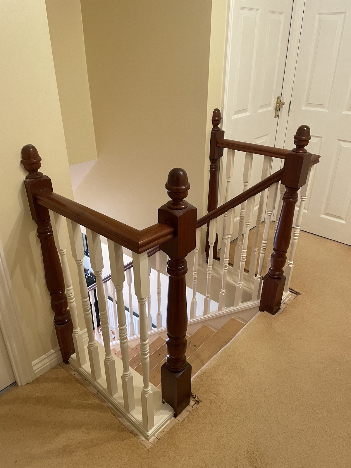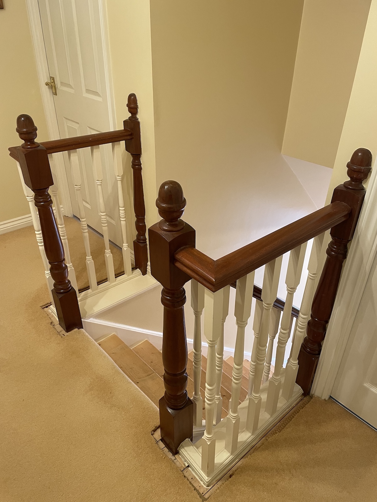 The original staircase featured a contrasting two-tone finish that had become outdated and no longer suited the surrounding décor. The mixed materials made the staircase feel heavy and visually cluttered.