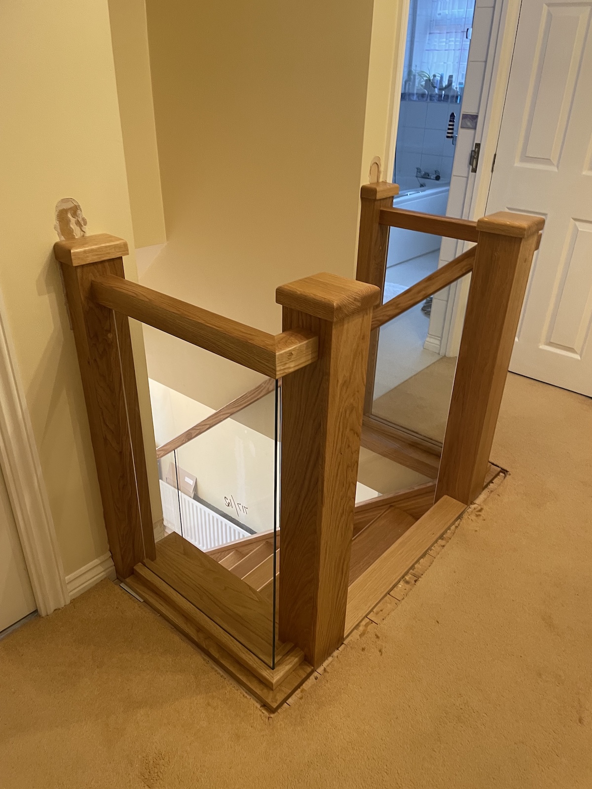 The staircase has been completely revitalised with a unified all-oak aesthetic and contemporary glass detailing. The transformation has created a brighter, more modern focal point for the home, delivering both style and long-term durability.